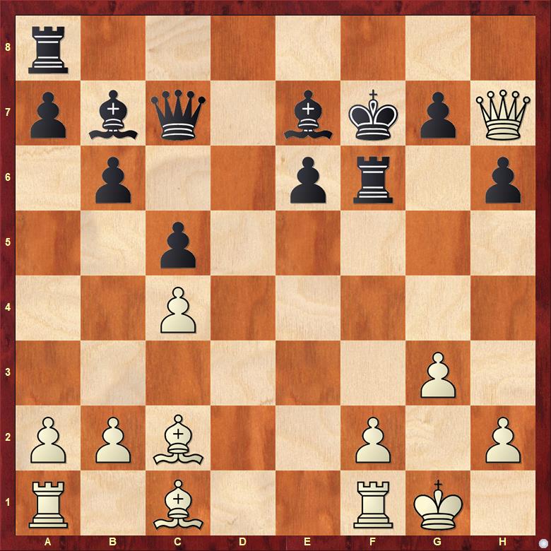 私は黒マスを弱める13... g6 のほうが不自然に感じて本譜を選択しましたが、実戦の流れを見ると難しい決断だったと思います。Vezerkepzo GM December 2021 (3)